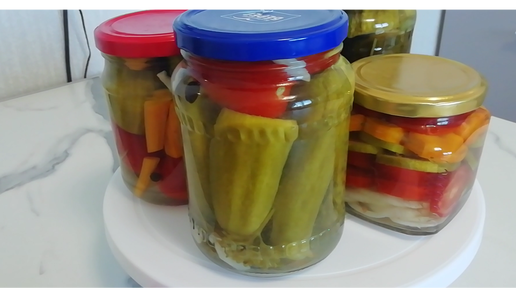 Маринованные огурцы и помидоры. Заготовки на зиму. Ассорти из овощей