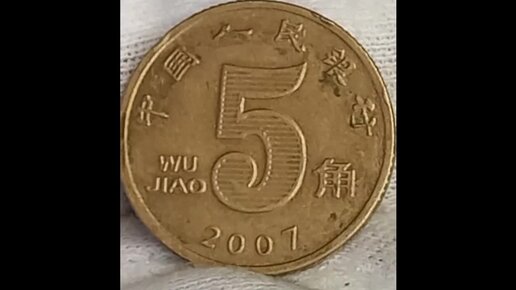 5 цзяо 2007 года. Китайская Народная Р.еспублика. Описание монеты.Аверс,реверс,гурт металл. Тираж монетный двор,