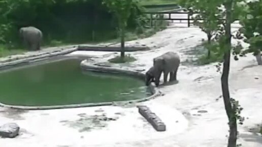 В зоопарке Сеула два слона спасают тонущего слонёнка в бассейне