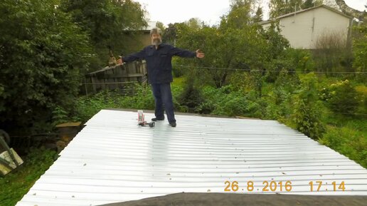 Как я крышевал сарай. То есть сначала (сдуру) крыл рубероидом, но потом я всё-таки сделал это металлопрофилем. Протечки прекратились