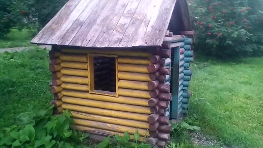 Бревенчатый домик на детской площадке - годы идут, а он стоит.