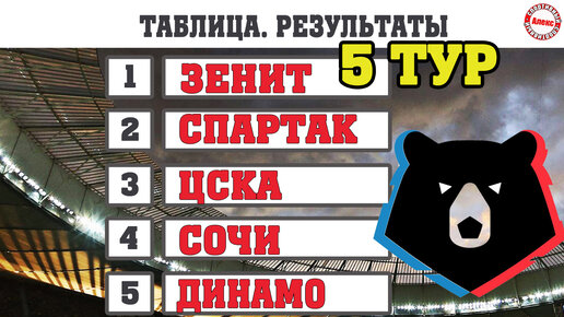 Зенит – ЦСКА. Чемпионат России. 5 тур. Результаты. Расписание. Таблица.