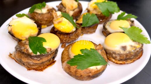 Простая в приготовлении, красивая внешне закуска из грибов с яйцами. Отличный рецепт для новогоднего стола