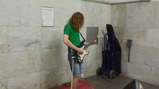 Гитарист-импровизатор Andrew Den исполнил мелодию на станции метро "Чистые пруды" в городе Москве