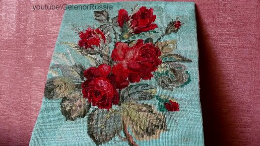 Старинная вышивка крестиком. Букет алых роз. Винтаж. Vintage collection