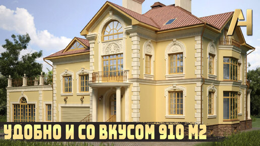 Удобный дом для большой семьи 910 м2. Обзор дома с мансардой, цокольным этажом, гаражом и верандой