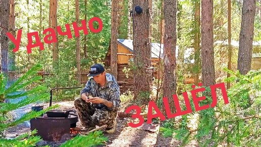 Это БОНУС! Дала АДРЕНАЛИНА! Рыбалка на УРА. Обед на костре у ТАЁЖНОЙ ИЗБЫ.