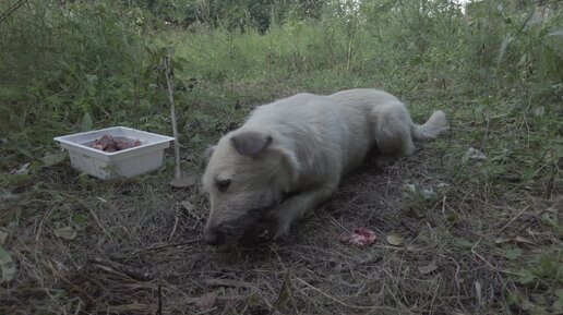 Рекс умело разделывается с говяжьими косточками. 11.08.2022 года (DJI_0088)