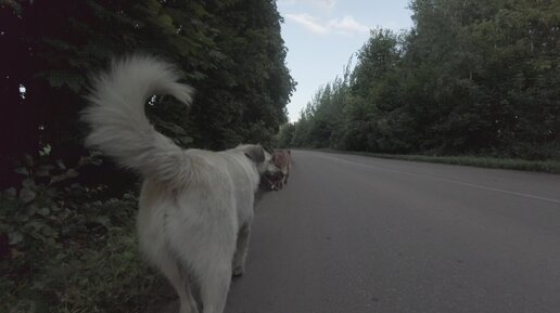 Плюша и Рекс пошли прогуляться со мной до остановки. 11.08.2022 года. (DJI_0093)