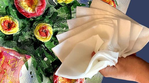 Мастер Класс Цветочная композиция в смешанной технике. Акварель, салфетки, восковые мелки.