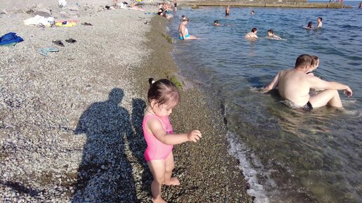Лия и папа играем на бережку 15.08.2022