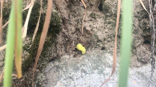 Муравьи тащат гусеницу по отвесному склону