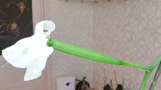 №1 Размножение орхидеи семенами. Выросла семенная коробочка после опыления орхидеи.