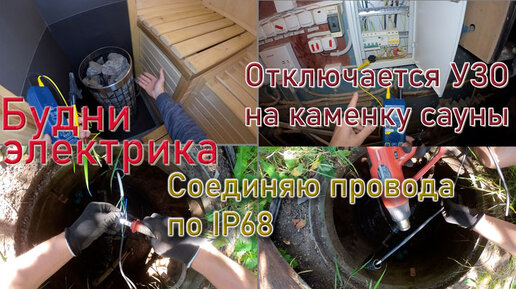 Через время отключается УЗО на сауну. Герметичное соединение проводов. Подключение каменки сауны