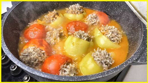 Фаршированные Перцы и Помидоры! Ну очень вкусные, сочные фаршированные овощи! Овощи с фаршем!