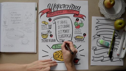 Скетч-рецепт "Шарлотка". Часть №3 Компоновка в листе и детализация. Рисование для детей 8+