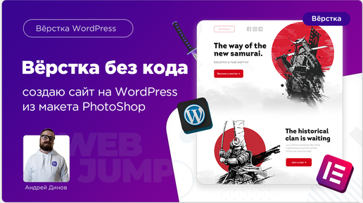 Вёрстка сайта на Wordpress и Elementor из PhotoShop (Сайт Самураев)