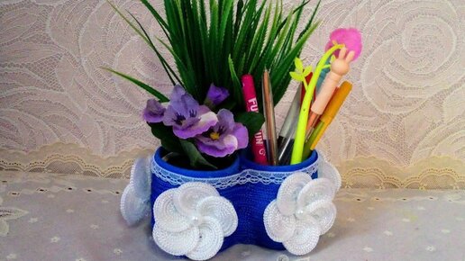 Корзинка органайзер из веревки и пластиковых бутылок своими руками. Поделки