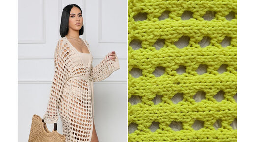 Узор спицами "Сетка". Очень легкий, но эффектный.
