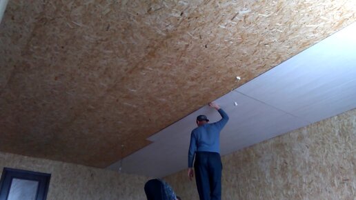 Монтаж панелей МДФ на потолок.