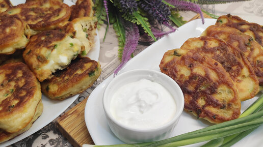 Оладьи с припеком (ленивые пирожки) с зеленым луком и яйцом. И для завтрака, и для перекуса.