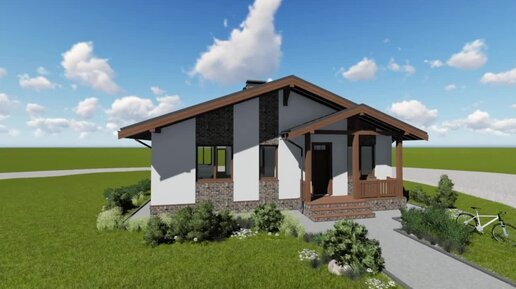 Проект одноэтажного дома 111 м2 из газобетона с террасой и крыльцом - 106-51