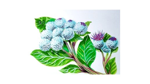 Репейник. Рисунок гуашью при помощи кисти-губки.