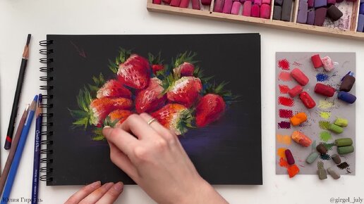 Сочная клубничка. Рисуем сухой пастелью. Мастер класс сухая пастель.