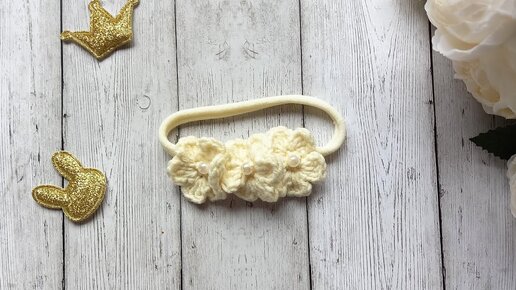 Повязка для новорожденных/ цветок крючком