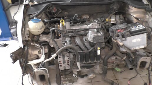 Смотрим, что уцелело после ДТП из подкапотного пространства Фольксваген Поло Седан