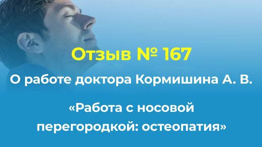 Отзыв 167 О работе доктора Кормишина А. В. «Работа с носовой перегородкой: остеопатия»