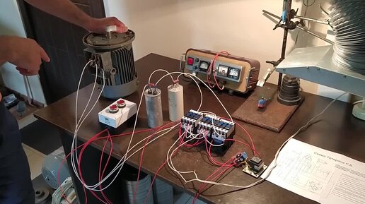 Реверс кнопками асинхронного двигателя с пусковым конденсатором 220В
