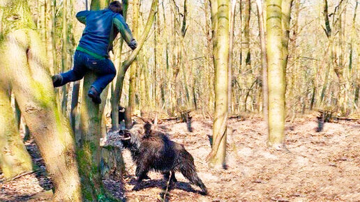 Собирая грибы, мать с ребенком наткнулись на разъяренного кабана, и хищник загнал их на дерево
