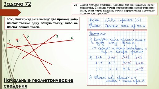 Начальные геометрические сведения. Прямые. Задача №72 (Атанасян 7 класс)