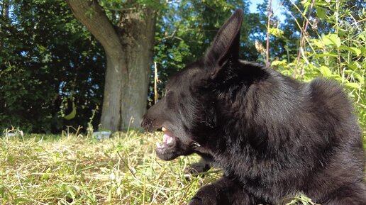 Блэк с удовольствием грызёт кость. 05.08.2022 года. (DJI_0014)