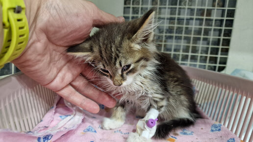 Котёнок найденый в подъезде болен | Спасение котёнка Тёмы | второй день клиники | Saving a kitten