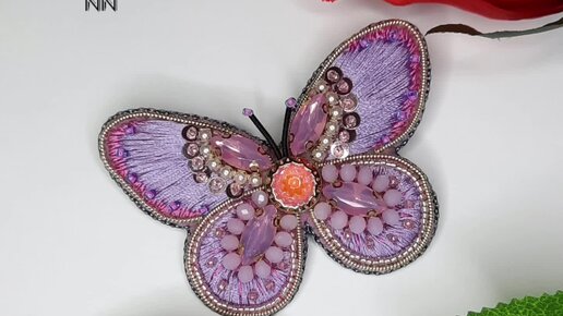 Брошь ' Бабочка " вышитая нитками мулине