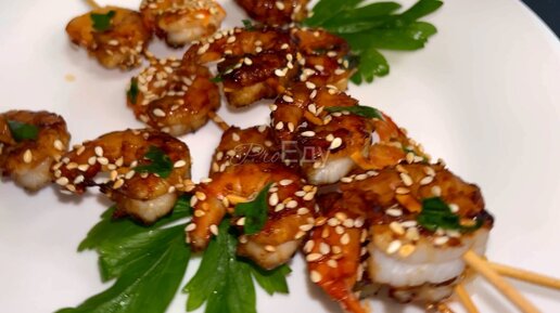 Делюсь супер рецептом. Шашлык из креветок с кунжутом. Вкусно, аппетитно, и очень празднично