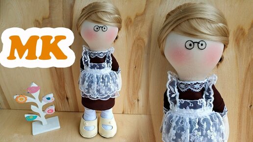 Кукла первоклассница. Как пришить волосы, оформить причёску и лицо