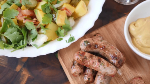 Немецкая кухня. Колбаски-гриль Bratwurst с картофельным салатом.
