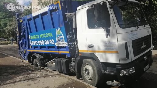 Грузовик провалился под землю прямо на дороге