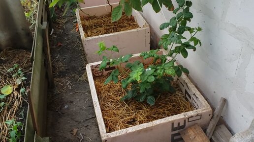 Ежевика Блэк Джем и малина Маравилла в ящиках.