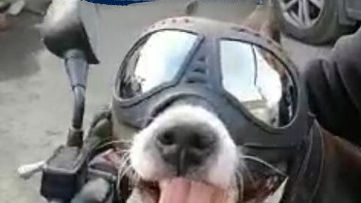 Американский стафф в мотоциклетных очках катается на байке: видео