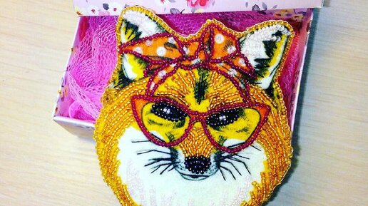 Готова работа.Вышивка бисером.Брошка лисичка...