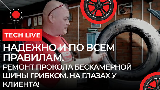 Ремонт прокола бескамерной шины грибком. Надежно и по всем правилам. На глазах у клиента!