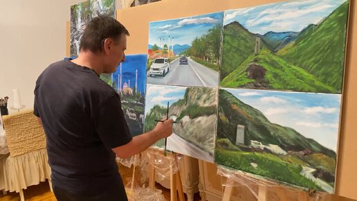 Мастер класс (метод Яшуркаева) одновременной работ маслом на 9 холстах. Чечня и Ингушетия. (3-этап).