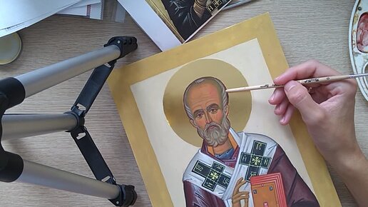 Написание иконы. Урок 7, часть 3. Власы и борода - уточняем свет.