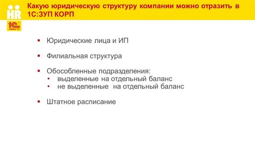 Как отразить структуру компании юридическую и организационную в 1С:ЗУП КОРП