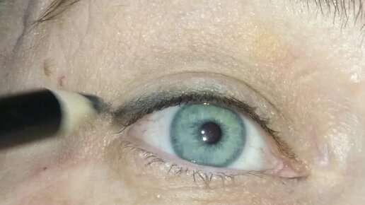 Закрашиваю межресничку и делаю растушеванную стрелку на нависшем возрастном веке