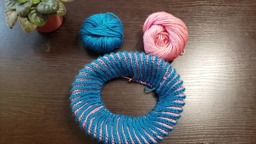 Английская резинка на круговых спицах. 2-х цветная резинка. Узор для шапок, снудов, свитеров.